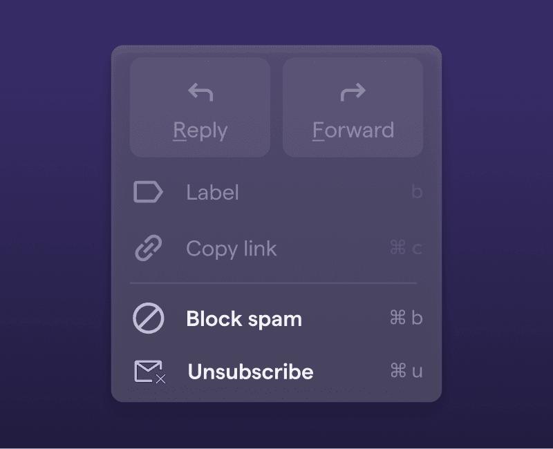 Block and unsubscribe: Protect your inbox against unwanted emails by blocking junk senders and unsubscribing from noisy marketing promos in just one click. Next time you get a phishing email trying to steal your data, take three seconds to block the sender and keep your inbox permanently cleaner going forward. Read more about how it works on our blog.