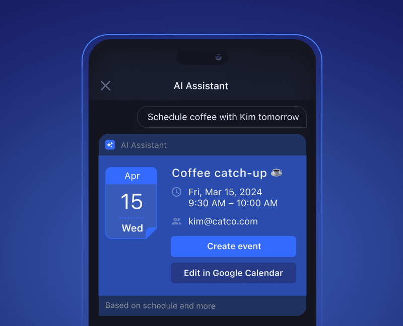 Seamless AI calendaring: Use the AI Assistant to manage your calendar by scheduling and creating new events right from your inbox. Available on all platforms & plans!