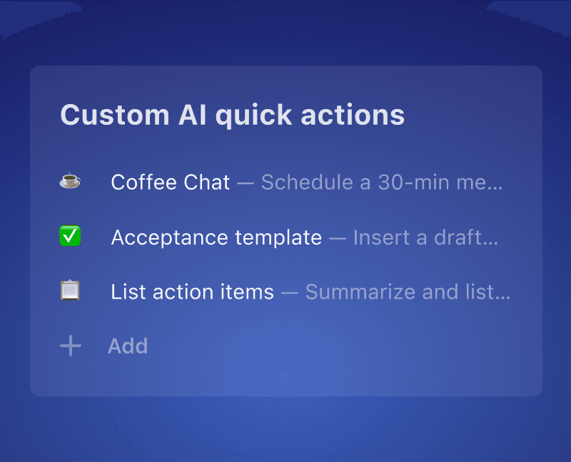 Personalize your AI Assistant's automations: Along with Shortwave’s default automations, you can now create custom one-click AI commands for your most common workflows.