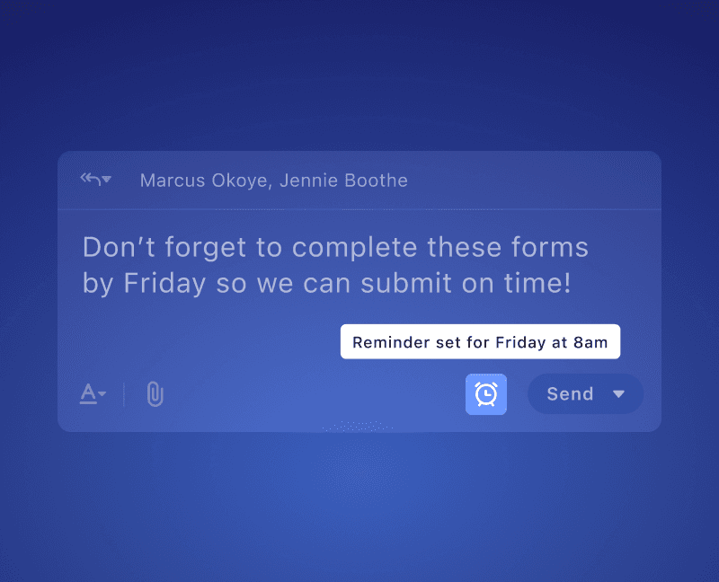 Never drop the ball again: Set a follow-up reminder with a custom time to have an email return to your inbox if there’s no reply.