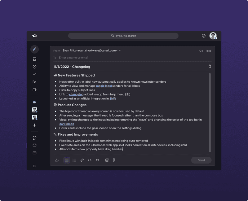 Readability improvements: Shortwave’s app typography has been completely overhauled for enhanced readability across devices and platforms. Fonts, text sizes, colors, and letter spacing are now optimized for easier email reading and writing.