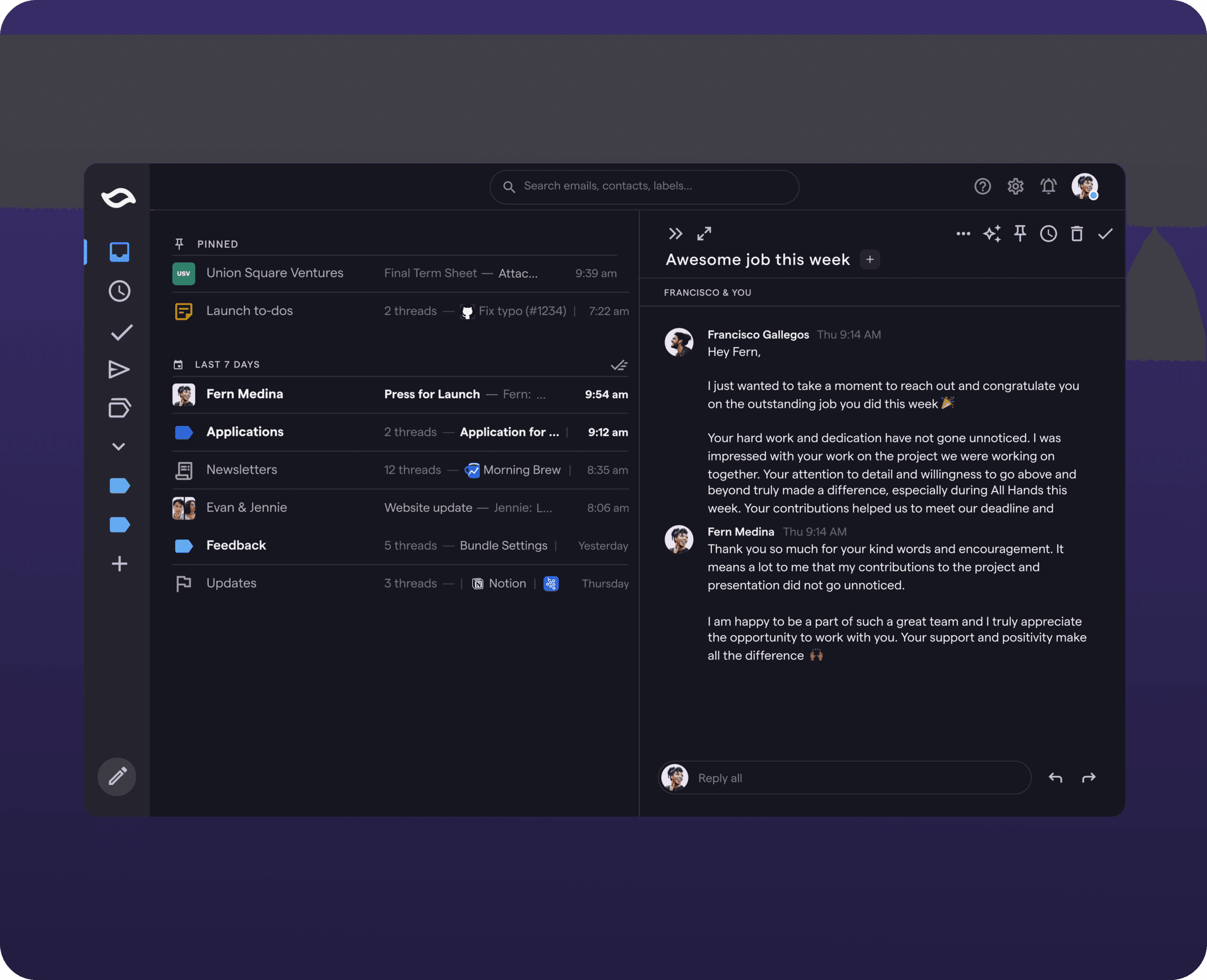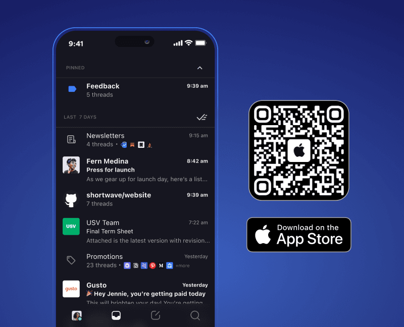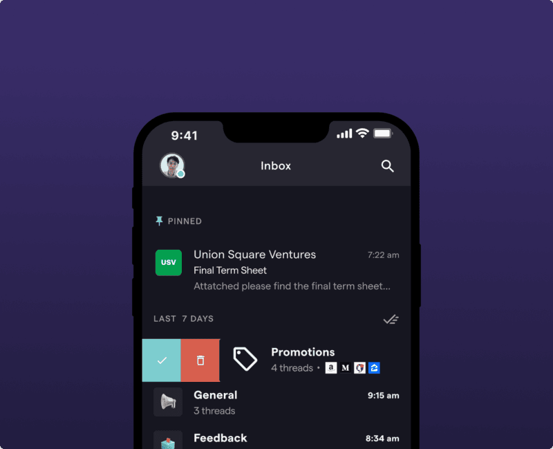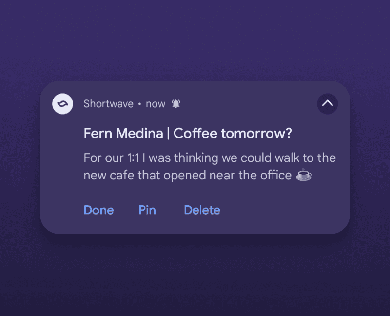 Inbox zero, even on the go: Quickly triage new emails without needing to open the app. Pin, delete, or mark emails as done right from your notifications on web, iOS, and Android.