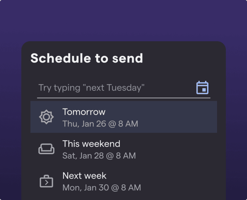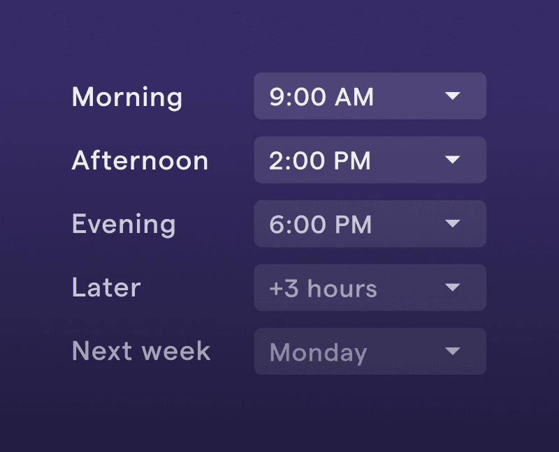 Custom schedules: Customize your default times for features like snooze, scheduled send, and delivery schedules from your General settings