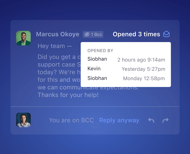 Read statuses: See when the emails you send are read so you can get the context you need to write effective follow-ups.