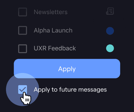 Alternatively, on the web you can drag and drop an email thread onto a label bundle. After dropping the thread, you will see a toast appear. Click "Always apply" on the toast to create an auto-apply rule.